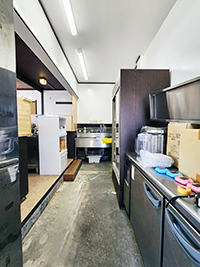 | リフォームポイント | 築30年の居酒屋をラーメン店に改装。限られた予算の中、コスト削減のため既存の建具や内装を活かしつつ、座敷席とカウンター席をすべて撤去して、カウンターのみの客席スタイルに。 限られた空間でスムーズに移動できるよう、厨房機器のレイアウトを変更 |
