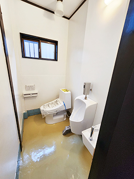 間仕切り壁と段差を撤去し、洋式・小便器を併設